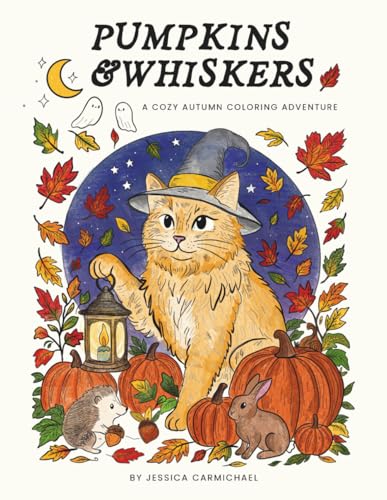 A whimsical autumn coloring adventure full of pumpkins, cats, woodland friends, and magical seasonal charm.